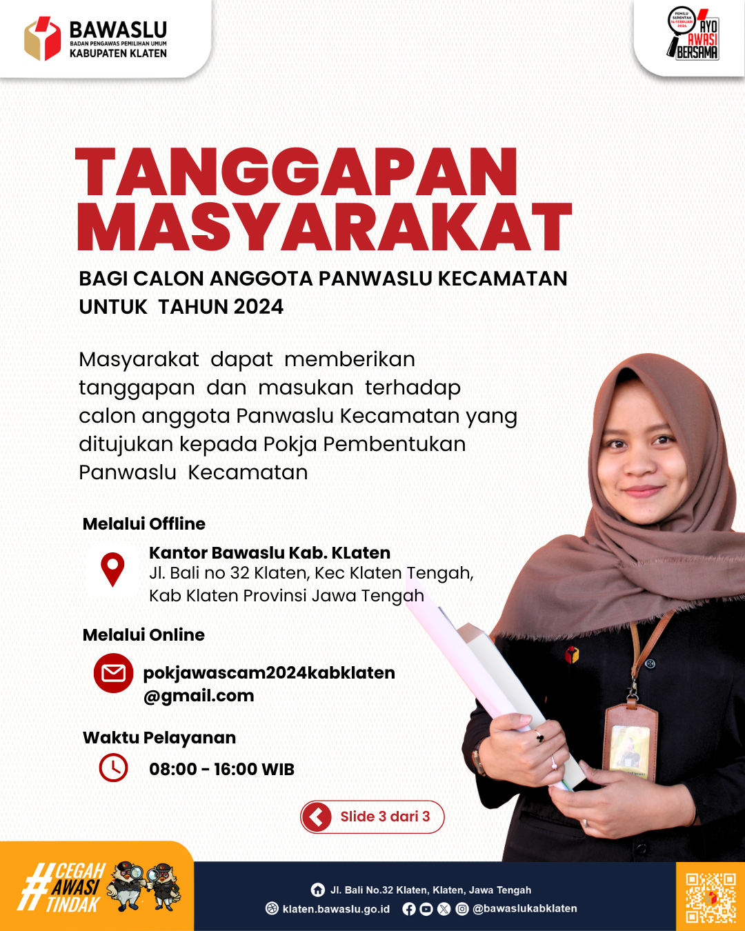 Pengumuman hasil seleksi penelitian administrasi calon anggota panwaslu kecamatan (peserta baru) dapat di Download Disini